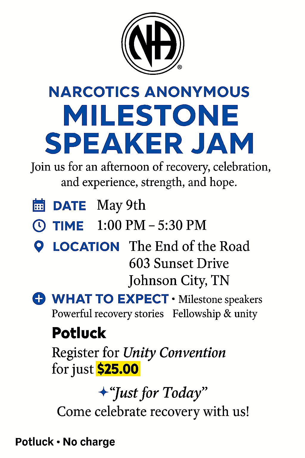 Join us in Johnson City for an afternoon of recovery, celebration, experience, strength, and hope!