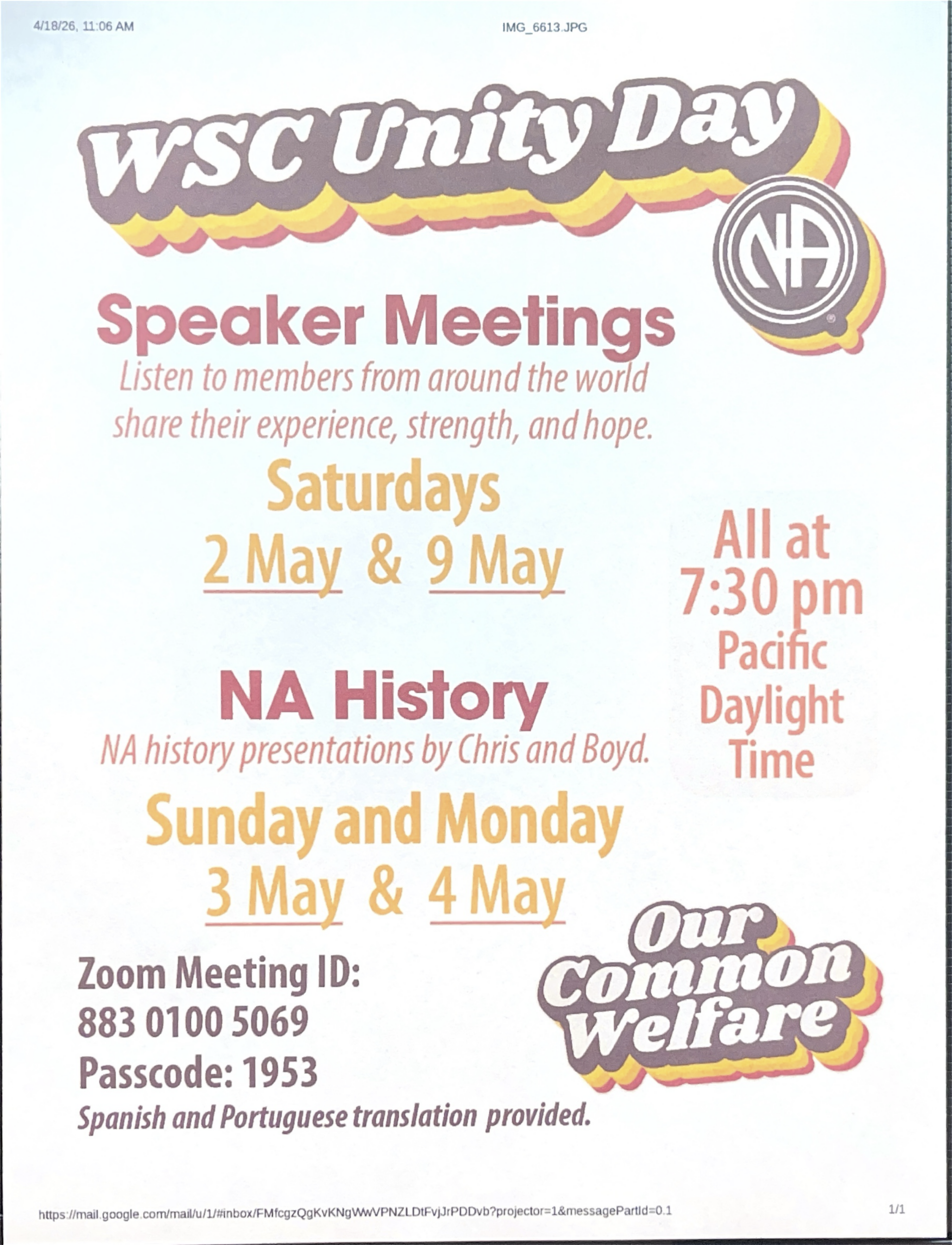 World Unity Day(s) will be celebrated fully over two consecutive weekends with speakers from around the world and special NA […]